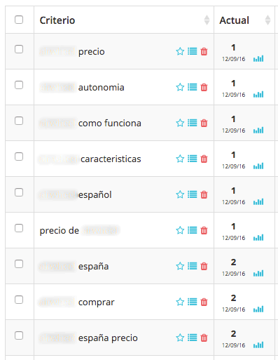 Aquí podemos ver una imagen con un extracto de las posiciones con palabras muy orientadas a compra (muy buenas para monetizar con afiliación) o de información.