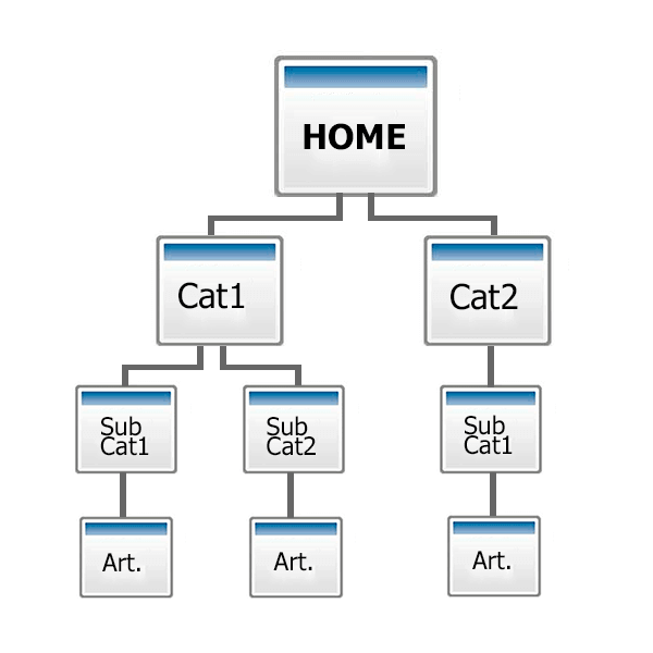 Esta estructura es un símil a un árbol genealógico. Va de un punto más grande (Index) a secciones más pequeñas internas que podrían ser por ejemplo las conocidas categorías, y de estas categorías, a posts de cada una de ellas, haciendo de esta forma un enramado de árbol.