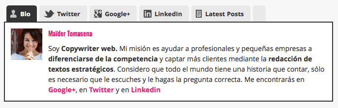 Sin duda es una opción elegante para mostrar el autor de un blog, o los autores si escriben varias personas en una misma página. Yo mismo la usaba pero al cambiar de tema de gustó cómo encajaba la que venía por defecto en el mismo.