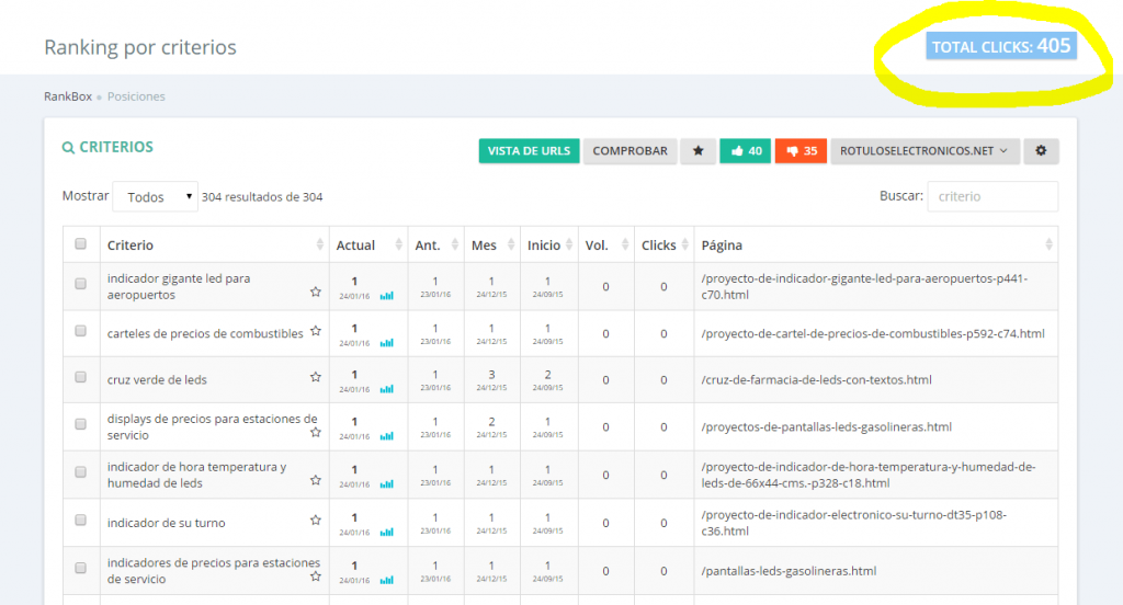 Es una buena forma también de saber si estos van subiendo posiciones al igual que lo podría hacer una de tus webs.