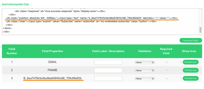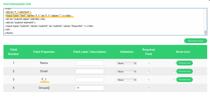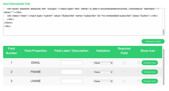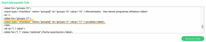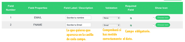 Haz la prueba, pulsa de nuevo en «Generate Fields» y verás cómo desaparece ese campo y se quedan ya solos el del nombre y el Mail que es lo que queremos.
