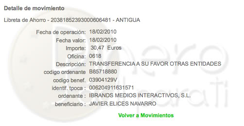Os dejo una imagen con el comprobante del pago que he recibido para mostraros que es una empresa en la que os podeis fiar: